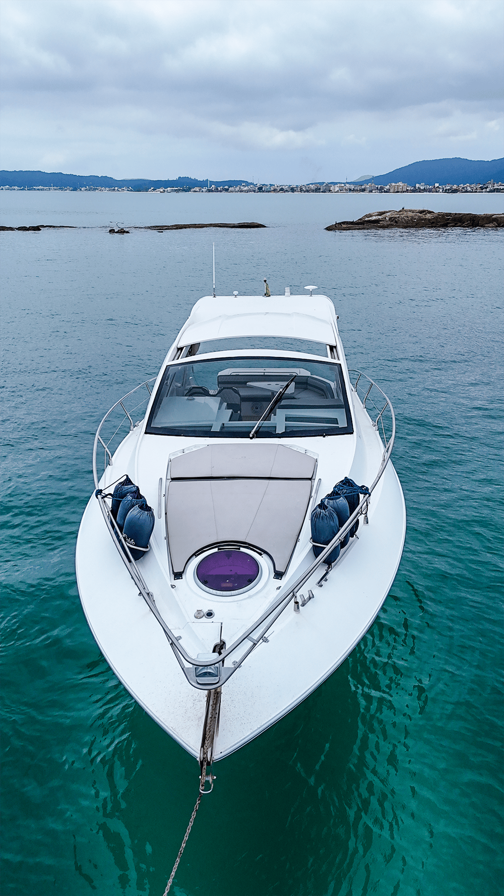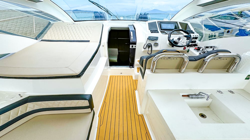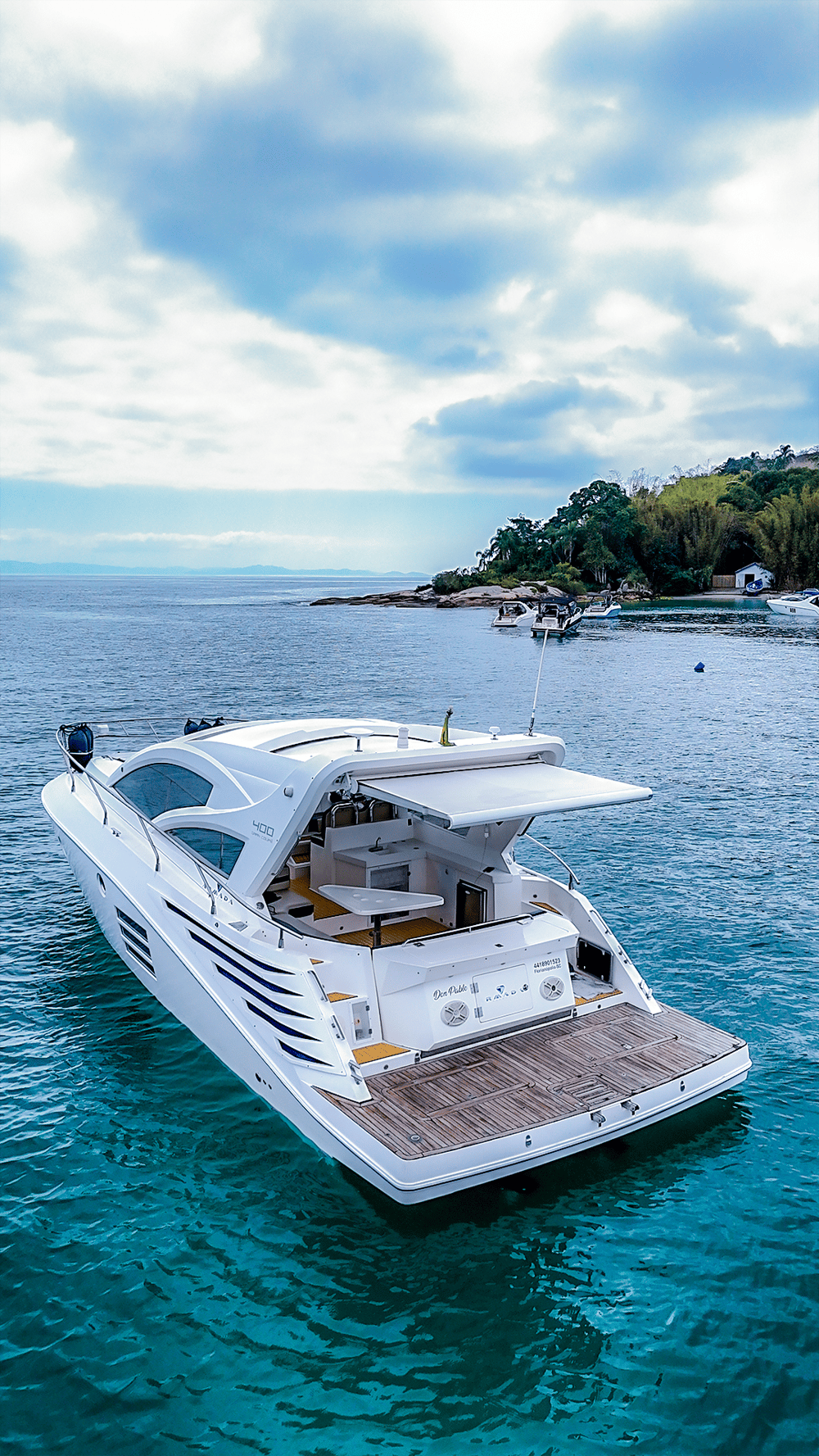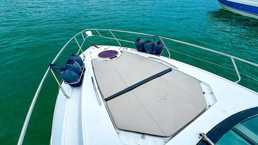 Lancha Armada 400 de 40 pés para até 13 passageiros lancha possui cozinha equipada, suíte, gerador, cabine auxiliar, ar condicionado, plataforma de popa, churrasqueira, som bluetooth,  banheiro e boias macarrão para um belo Passeio de Lancha em Florianópolis