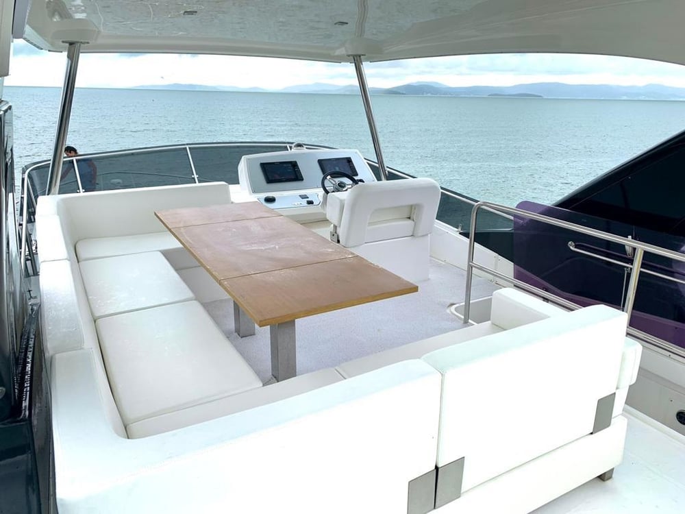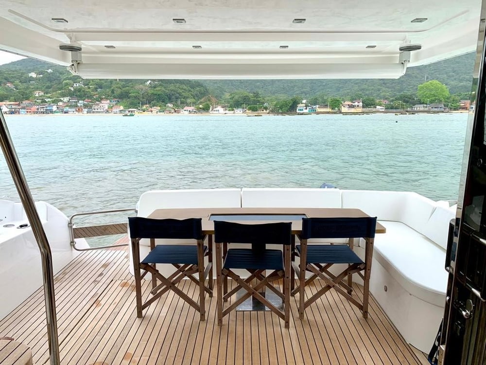Barco de alto padrão, com excelente espaço, perfeita para grupos grandes e eventos, para até 15 passageiros e 02 tripulantes.