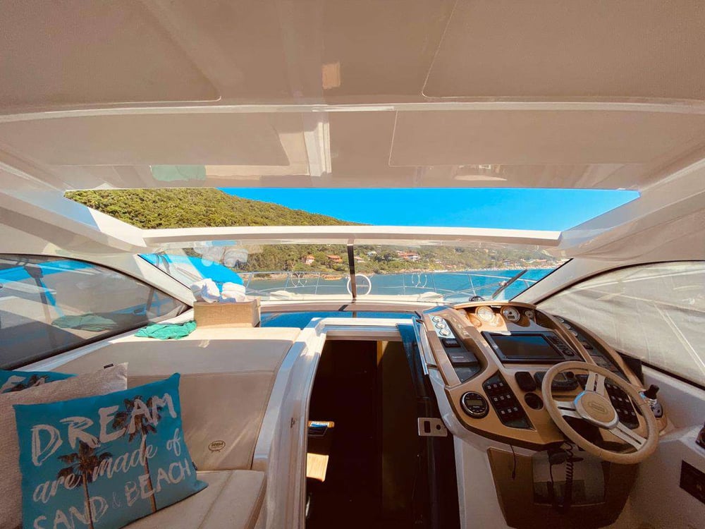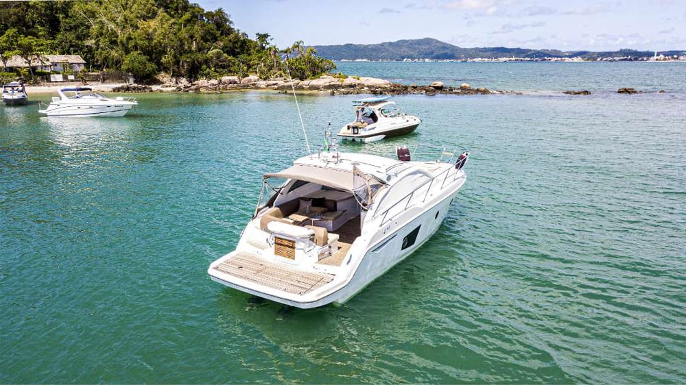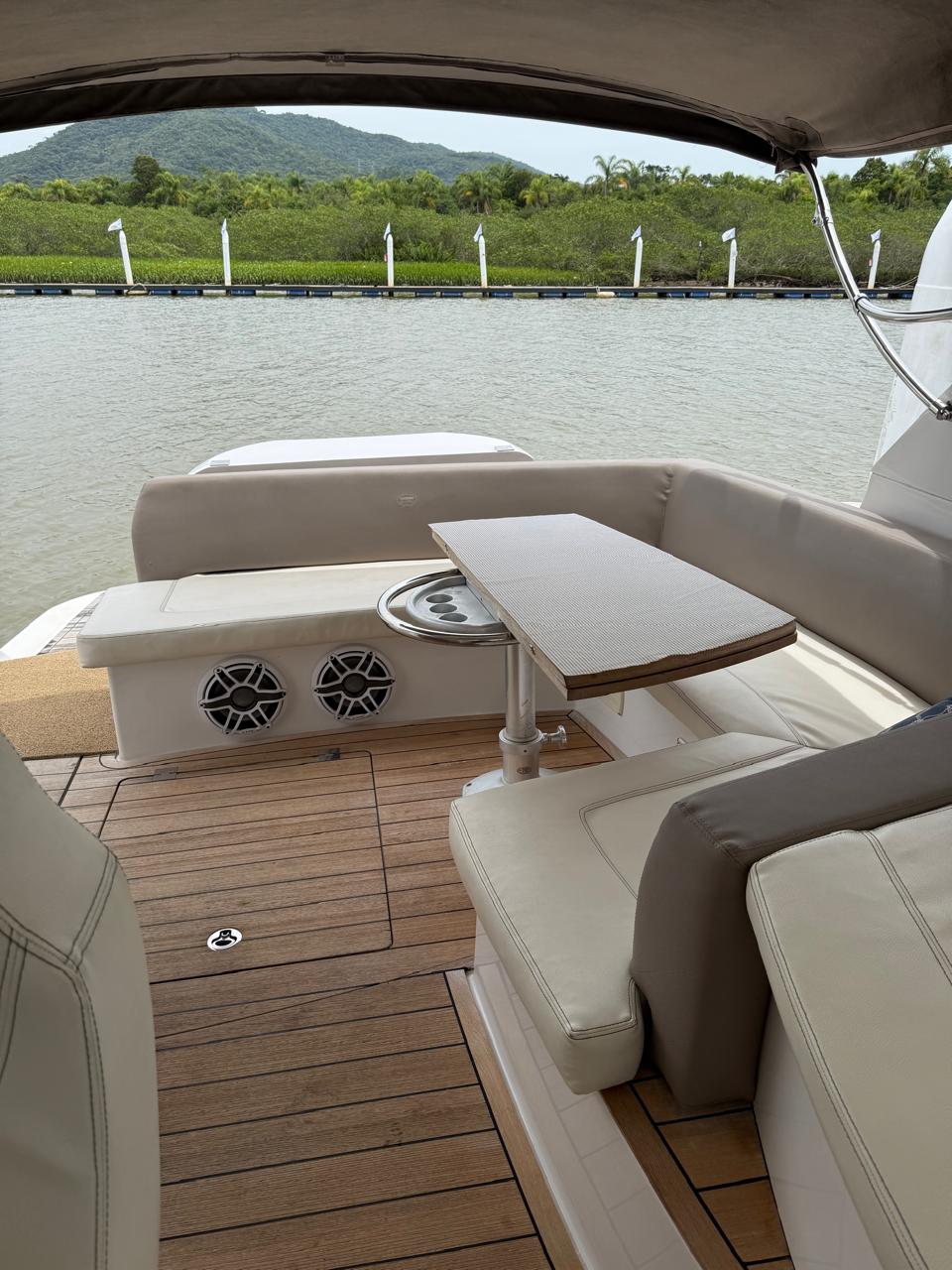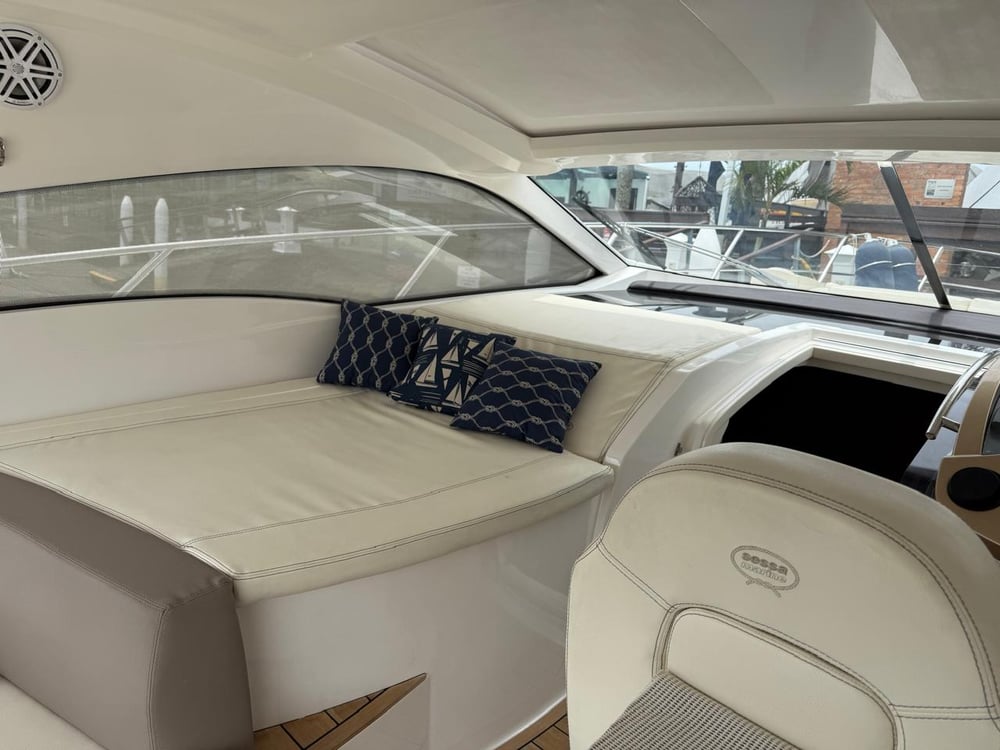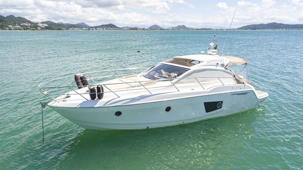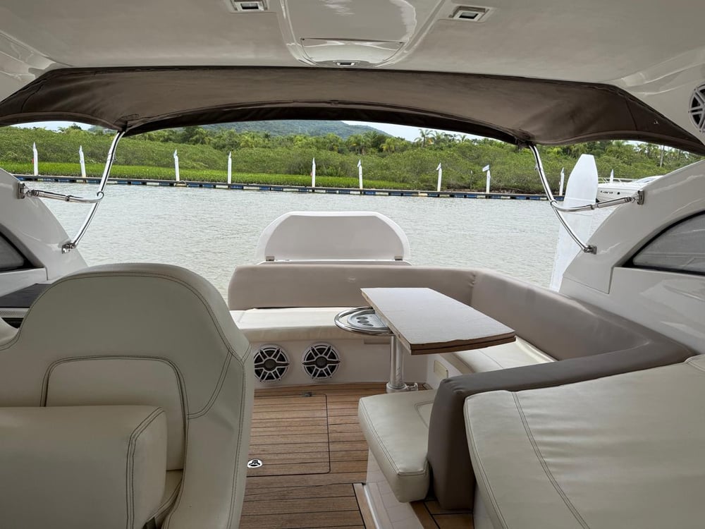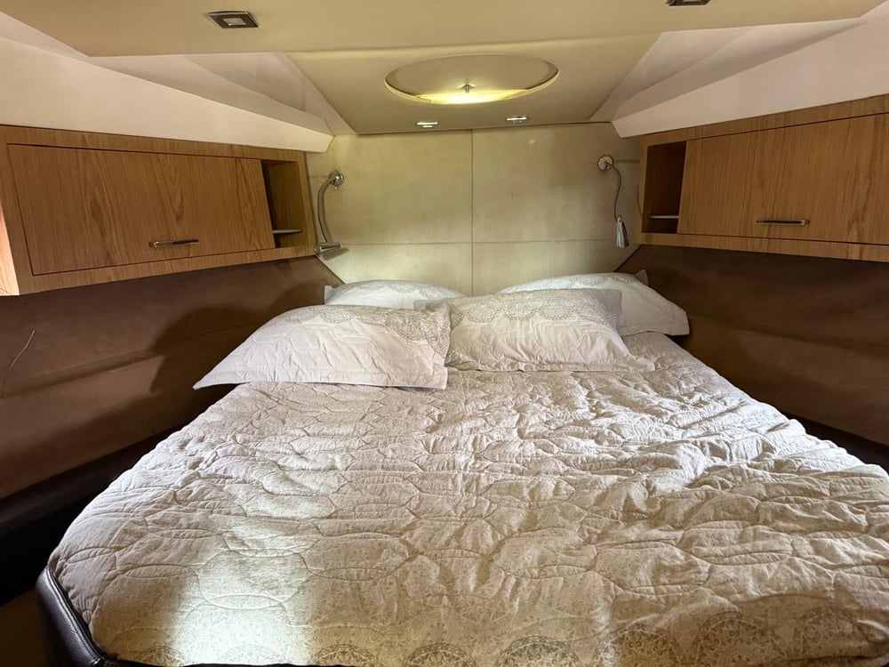 Lancha Sessa 400 de 40 pés para até 13 passageiros, teto Hard Top, quarta com cama de casal, plataforma de popa com espaço gourmet e churrasqueira, cabine interna, proa solário, cooler, som bluetooh , banheiro elétrico, bóias macarrão e espreguiçadeira.