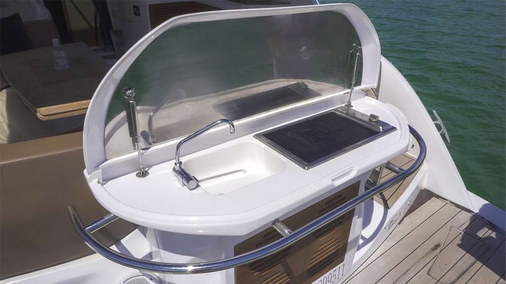 A capacidade da Sessa 400 é de para até 13 passageiros e um marinheiro