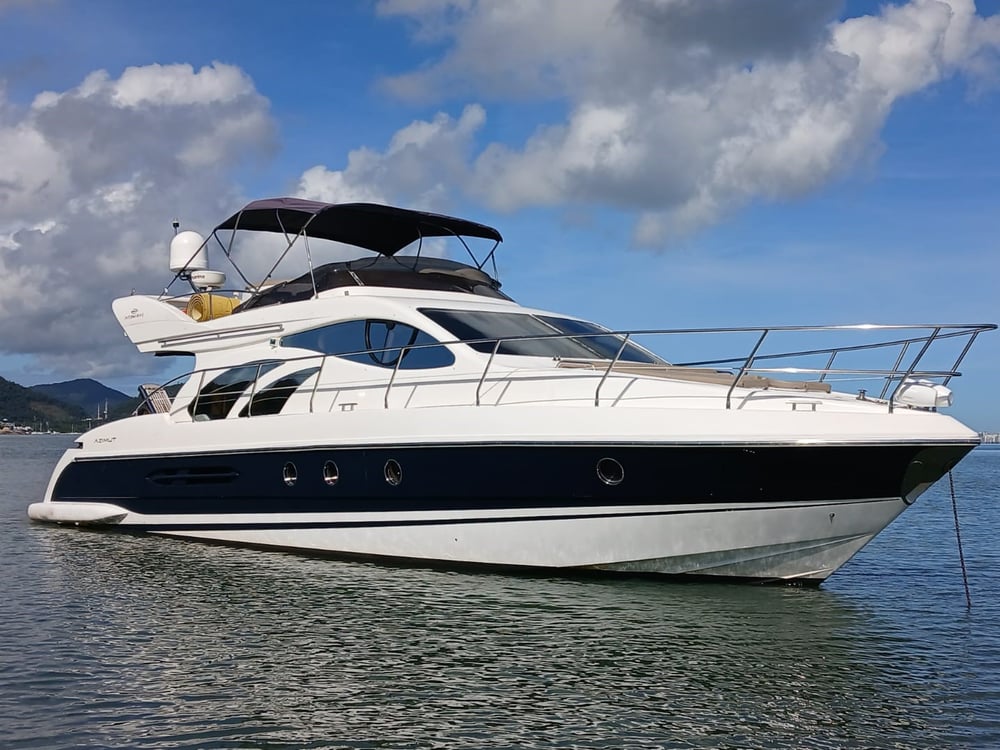 A capacidade do Yacht Azimut 520 Fly é de até 18 passageiros e um marinheiro