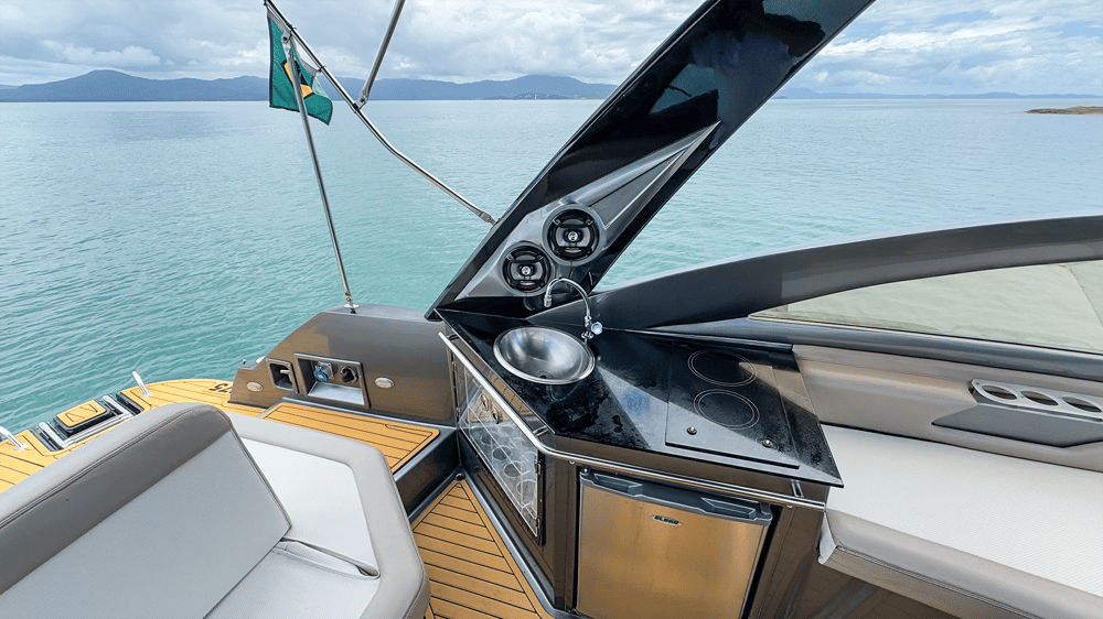 Espaço Gourmet de popa com churrasqueira.