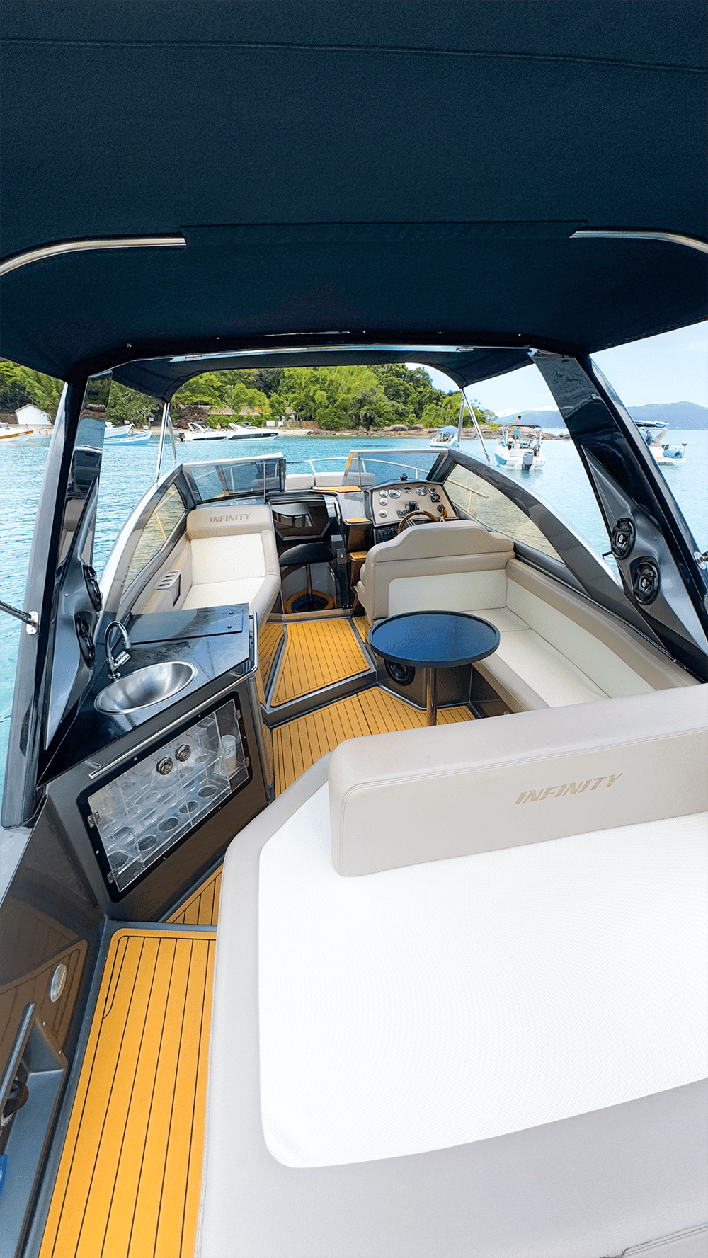 A capacidade da Inifinity é para até 11 passageiros e um marinheiro.